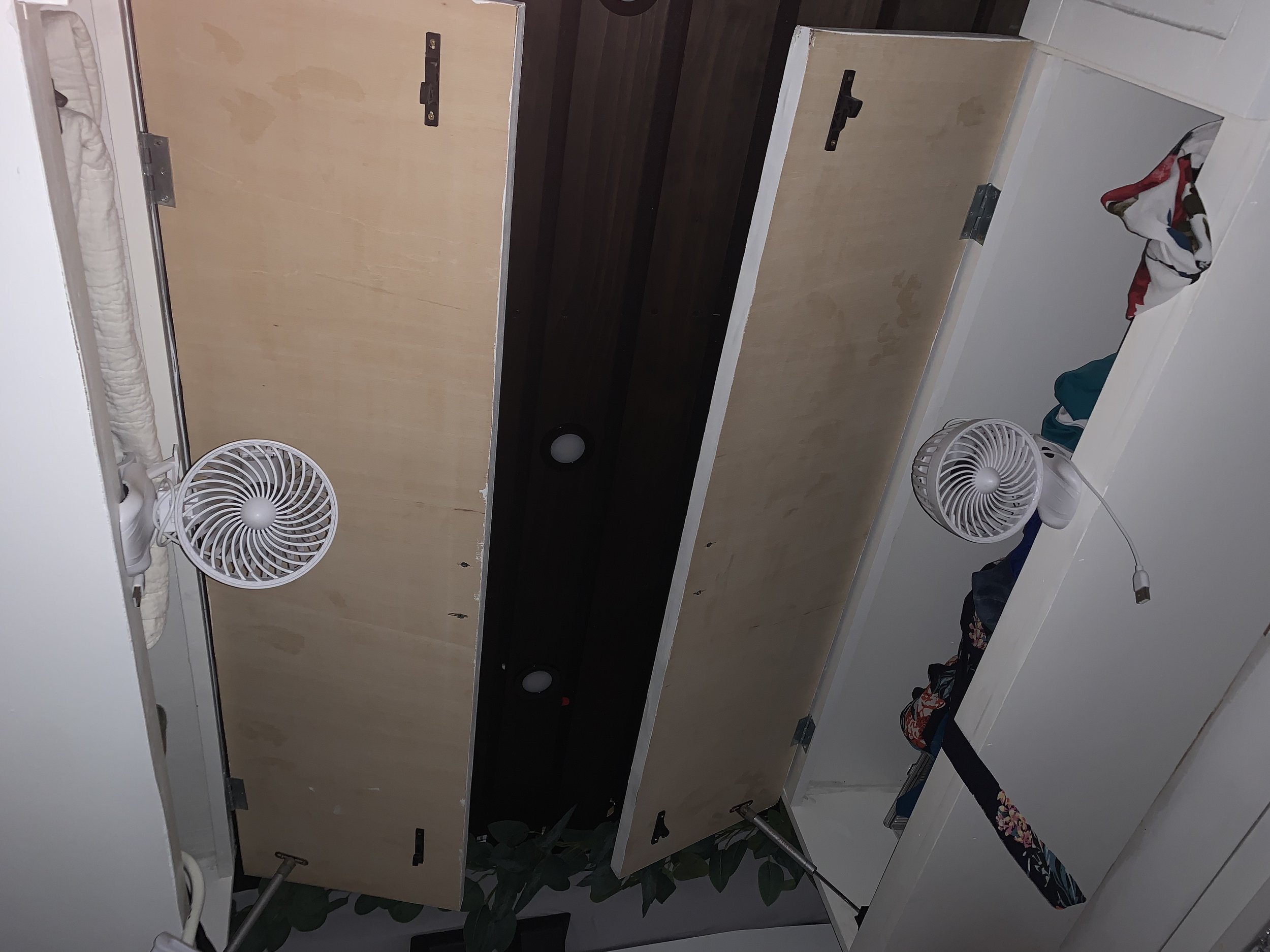 Upper cabinet door gas struts are a huge deal for holding up your Doors Let’s talk about fans. I have a few different options that we use in the van. All basically the same size but they all have different purposes. The first one you see in white is our most used. We have 2 of them. These are awesome because the can clip onto anything you need. We even attached them to our upper cabinets last weekend and they did the job like a ceiling fan. They other fans are great for outside because they are a little more powerful and they can be hung from trees, our moon shade and rope. Even if you have an AC in your rig or the vent fan I do think these are still a good get just because you can bring them anywhere and you can never have to much air flow. Especially when it’s in the high 90s outside.