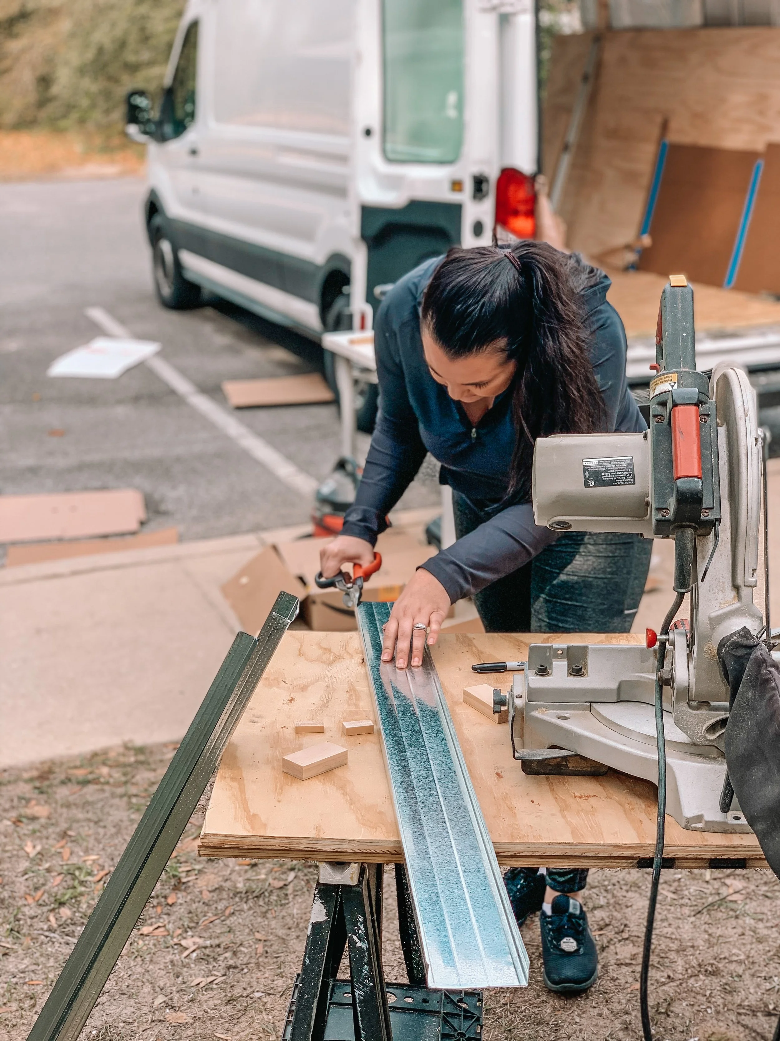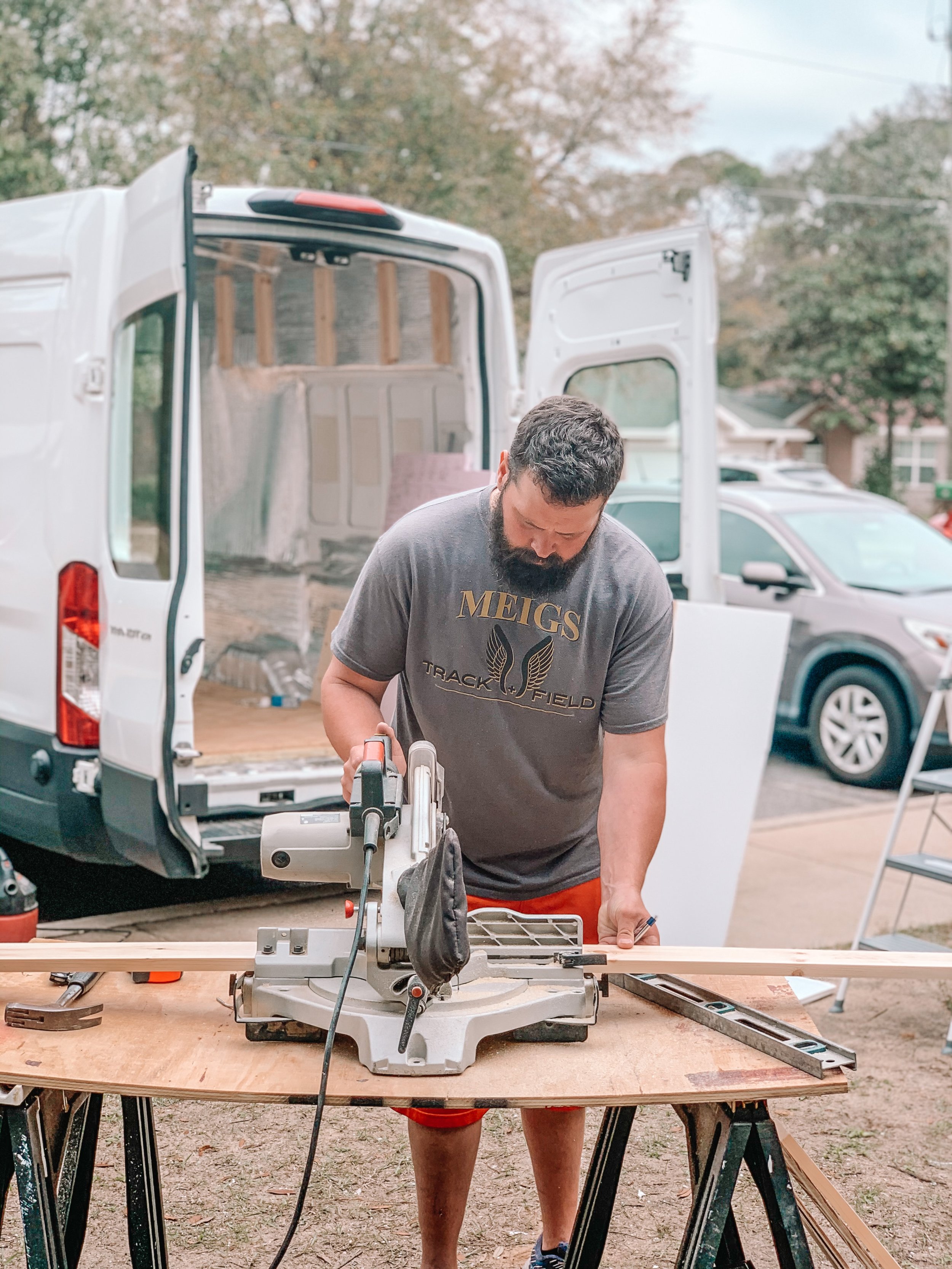 This was our first really big scary project we tackled. Making our first big cut in the van!